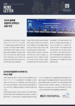 2025.09.12건국대학교 모빌리티인문학 연구원(원장 신인섭)은 지난 7월 17일 싱가포르국립대학교 아시아연구소(소장 Tim Bunnell)와 상호협력협약(MOU)을 체결했다. 이번 협약으로 양 기관은 인문·사회 분야에서 다양한 공동연구와 학술 활동을 본격 추진한다. 싱가포르국립대 아시아연구소는 2001년 설립돼 아시아 지역 연구를 선도해온 세계적 학술 거점이다. 인문학과 사회과학 전반의 학문을 포괄하는 본 연구소는, 특히 학문 간 경계를 넘는 융합적 연구를 지향하며 세미나·학술대회·공동연구 등을 통해 국제 학자들의 교류를 촉진해 왔다. 건국대 모빌리티인문학 연구원은 2018년 […]