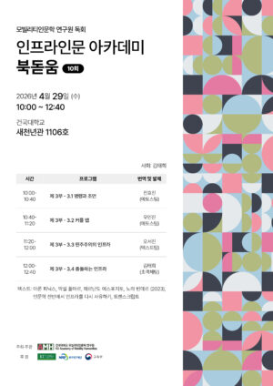 2026.03.26건국대학교 모빌리티인문학 연구원(원장 신인섭)이 한국연구재단 인문한국3.0(HK3.0) 지원사업에서 주관하는 ‘2025 HK3.0 Researcher’ 2개 부문에 선정되며 독보적인 연구 경쟁력을 다시 한번 입증했습니다. 🏆 주요 선정 내역 이번 시상은 전국 10개 연구단이 참여한 가운데 총 5개 부문 중 2개 부문을 본 연구원과 소속 연구자가 석권하는 쾌거를 거두었습니다. 1. 학술대회 부문: 인프라 인문학의 국제적 확산 연구원은 지난 1차년도 동안 […]