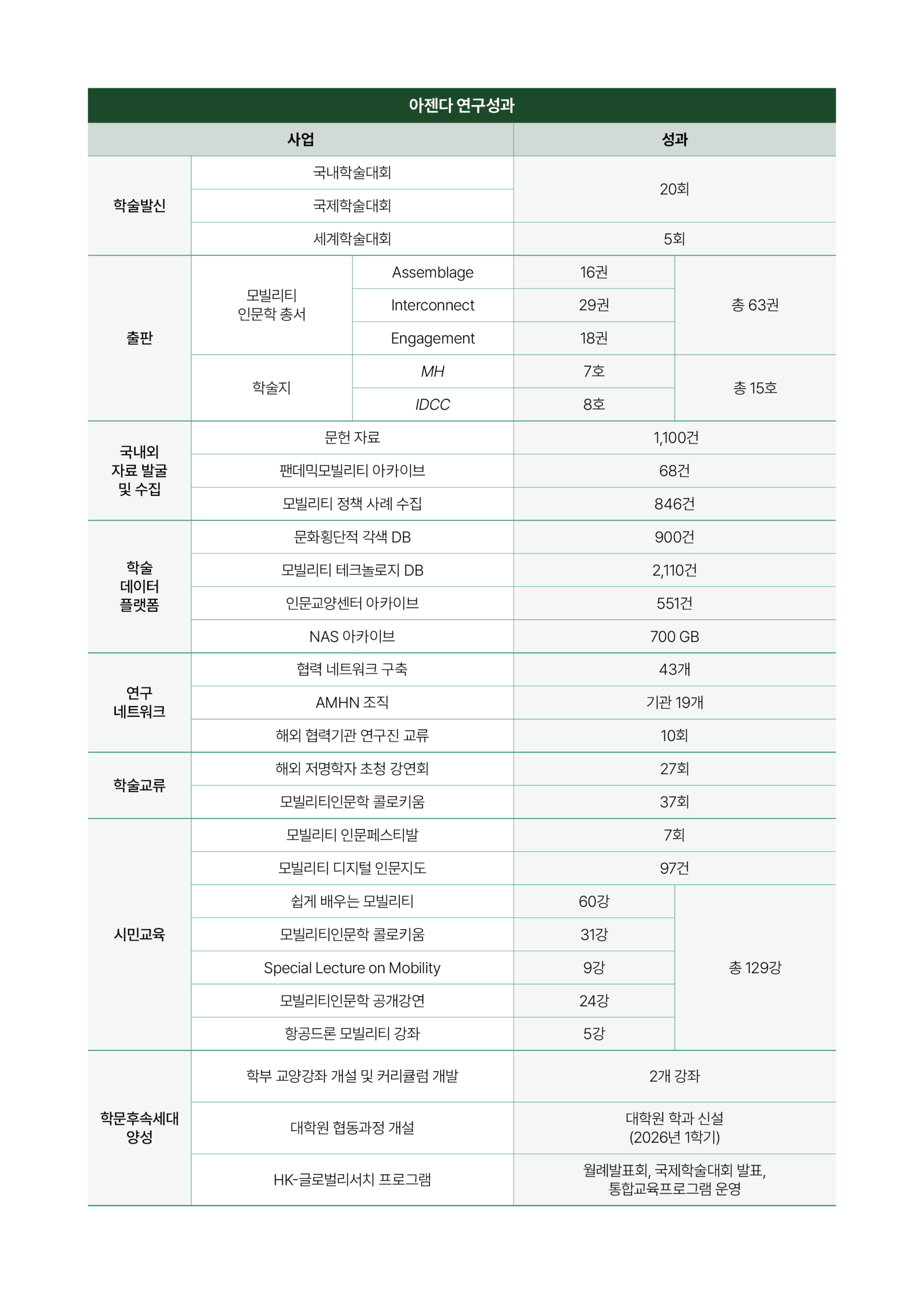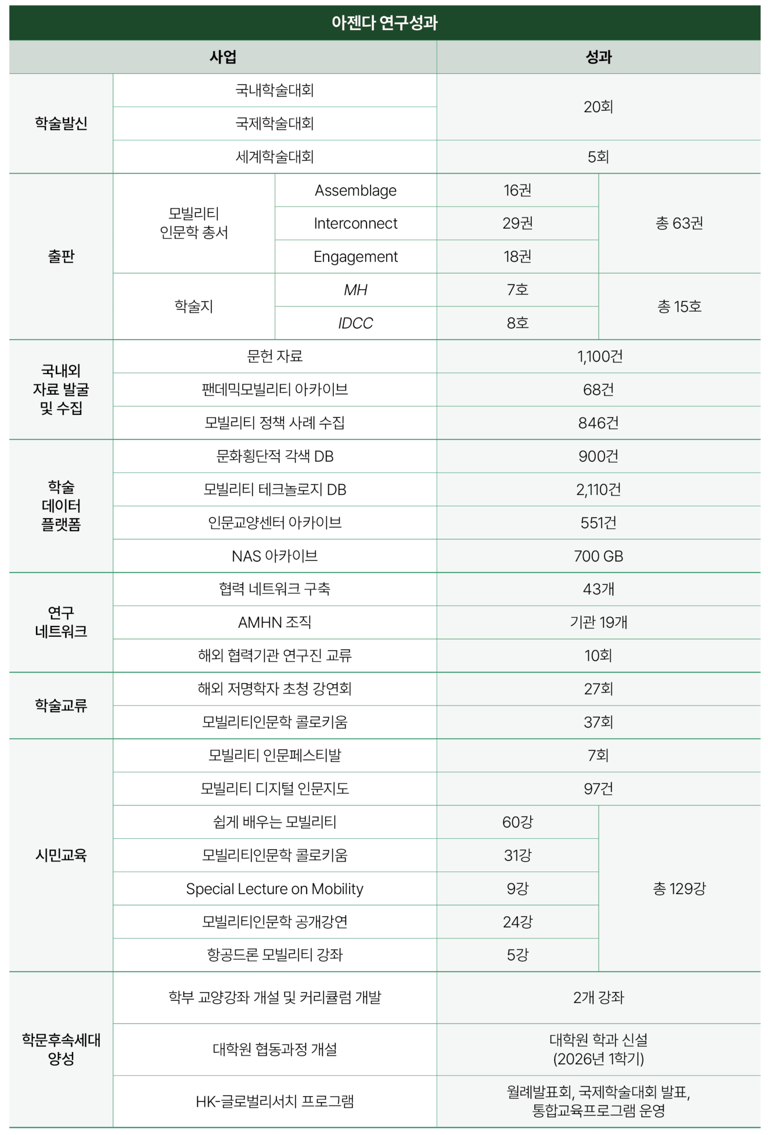 그러므로 모빌리티인문학은 ‘모빌리티’ 개념으로 ‘영토’와 ‘정주’를 대체하는 동시에 인간과 모빌리티 테크놀로지의 공-진화라는 관점에서 미래세계를 설계하기 위한 사유 패러다임을 정립한다.