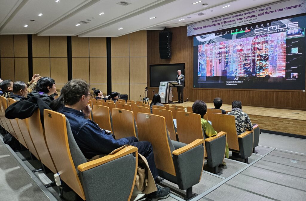 이번 학술대회의 기조강연에는 덴마크 올보르대학교 올레 B. 옌센(Ole B. Jensen) 교수가 참여해 ‘인프라, 권력, 그리고 사회변화(Infrastructures, Power, and Social Change)’를 주제로 발표했다. 옌센 교수는 이동 인프라가 정책 결정 및 설계 단계에서 특정 집단에게 불리하게 작용할 수 있는 지점을 분석하며, 이동의 격차가 구조화되는 방식을 조명해 큰 관심을 모았다.