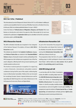 2026.03.26The Academy of Mobility Humanities at Konkuk University, directed by Professor Inseop Shin, has once again demonstrated its exceptional research competitiveness by being selected in two categories of the ‘2025 HK3.0 Researcher’ awards organised under the National Research Foundation of Korea’s Humanities Korea 3.0 (HK3.0) support programme. 🏆 Major Achievements In this year’s awards, ten […]